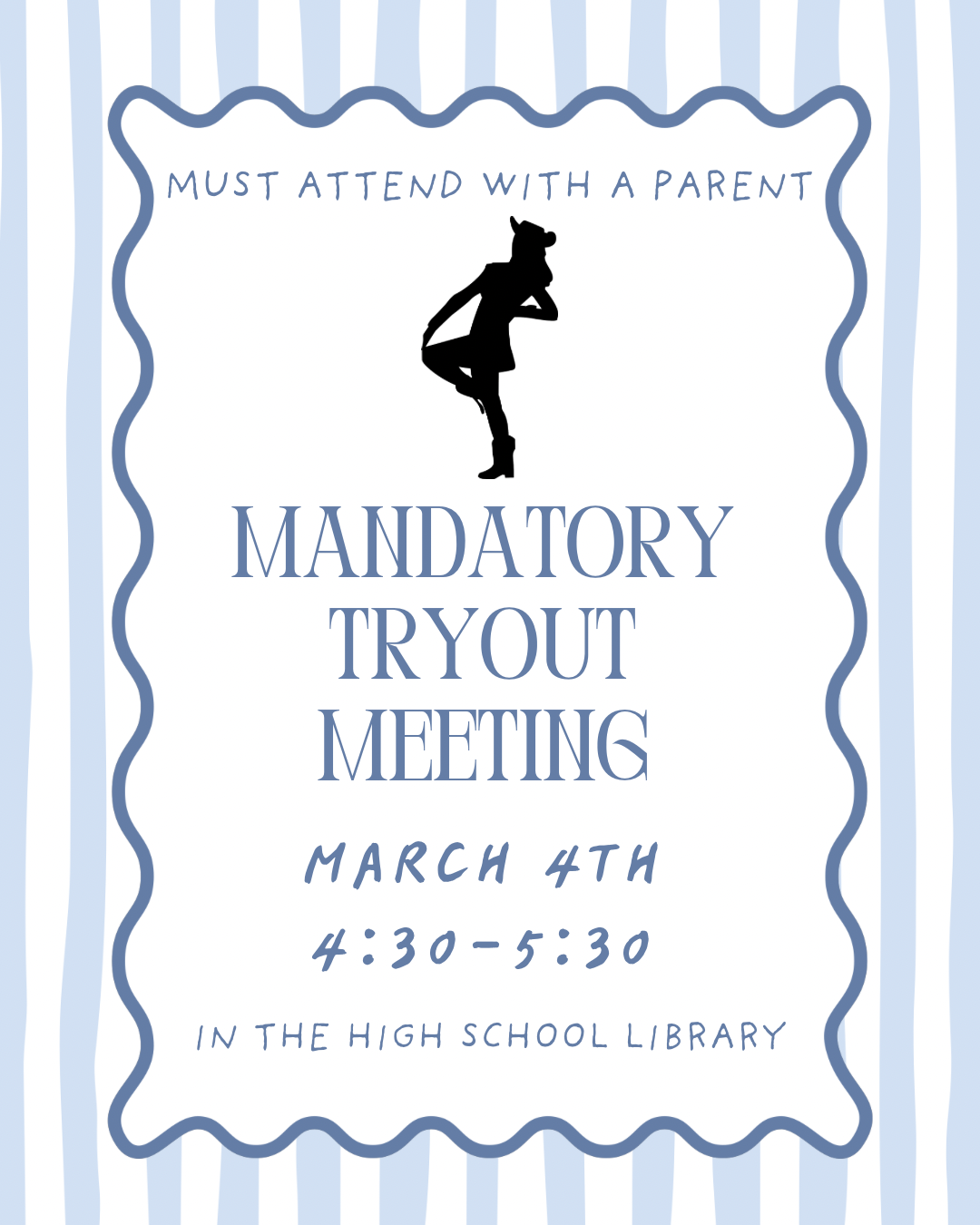 Pacesetter Tryout Reminder The Required Candidate & Parent Meeting is today, March 4, from 4:30 to 5:30 p.m. in the High School Library.