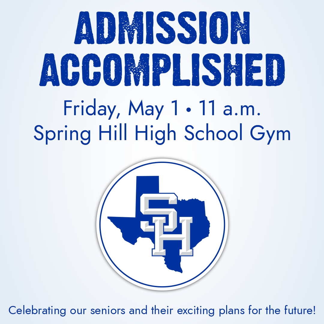 Admission Accomplished is a celebration of Spring Hill seniors and their exciting plans for the future. To attend, seniors are asked to submit a copy of one of the following by Friday, April 10: